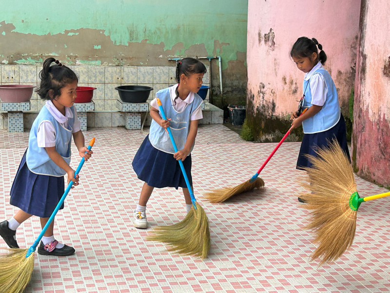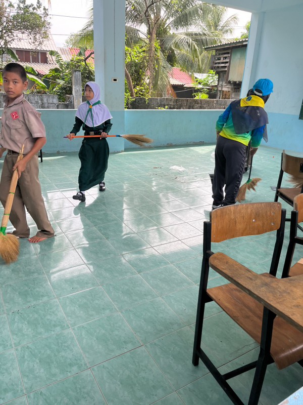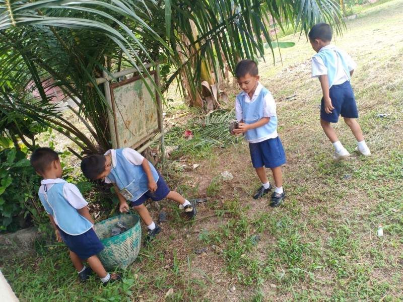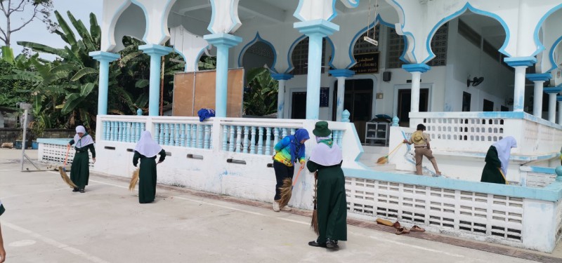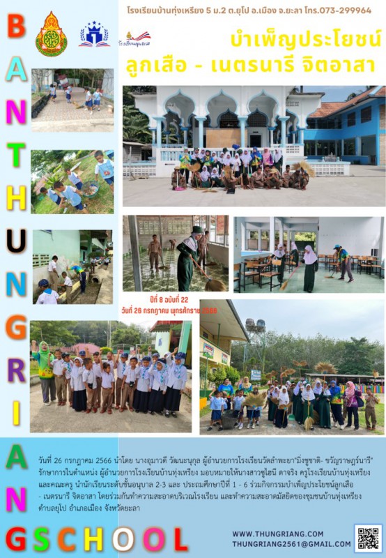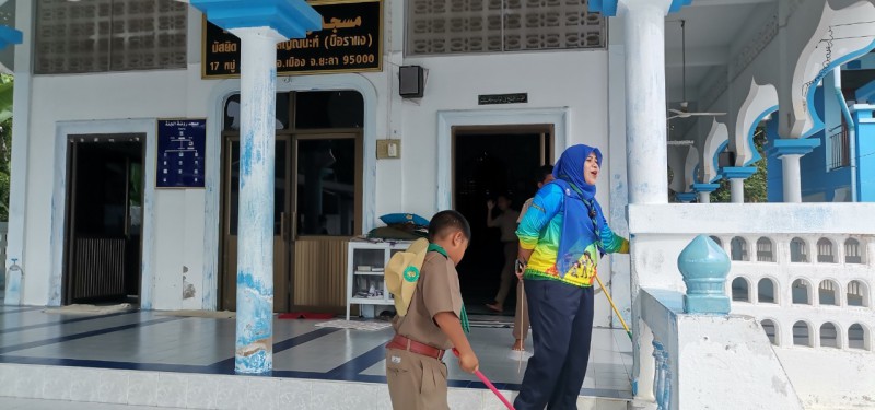และ ประถมศึกษาปีที่ 1 - 6 ร่วมกิจกรรมบำเพ็ญประโยชน์ลูกเสือ - เนตรนารี จิตอาสา โดยร่วมกันทำความสะอาดบริเวณโรงเรียน และทำความสะอาดมัสยิดของชุมชนบ้านทุ่งเหรียง ตำบลยุโป อำเภอเมือง จังหวัดยะลา
