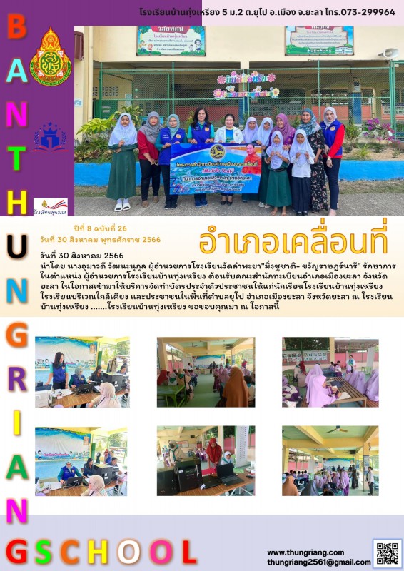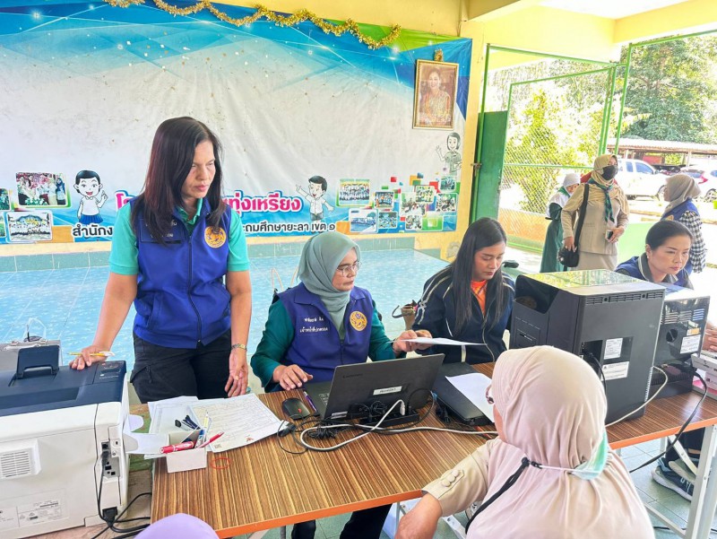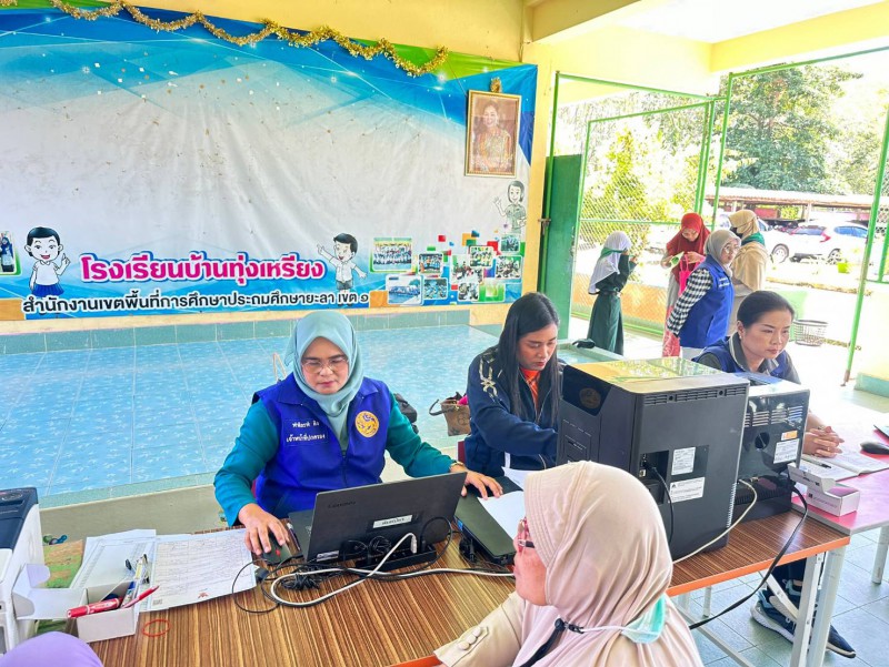 วัดลำพะยา"มิ่งชูชาติ- ขวัญราษฎร์นารี" รักษาการในตำแหน่ง ผู้อำนวยการโรงเรียนบ้านทุ่งเหรียง ต้อนรับคณะสำนักทะเบียนอำเภอเมืองยะลา จังหวัดยะลา ในโอกาสเข้ามาให้บริการจัดทำบัตรประจำตัวประชาชนให้แก่นักเรียนโรงเรียนบ้านทุ่งเหรียง โรงเรียนบริเวณใกล้เคียง และประชาชนในพื้นที่ตำบลยุโป อำเภอเมืองยะลา จังหวัดยะลา ณ โรงเรียนบ้านทุ่งเหรียง