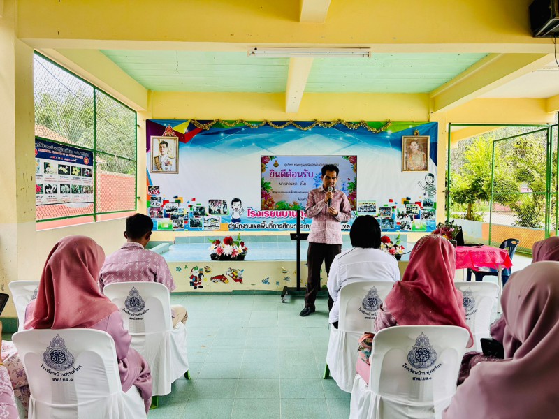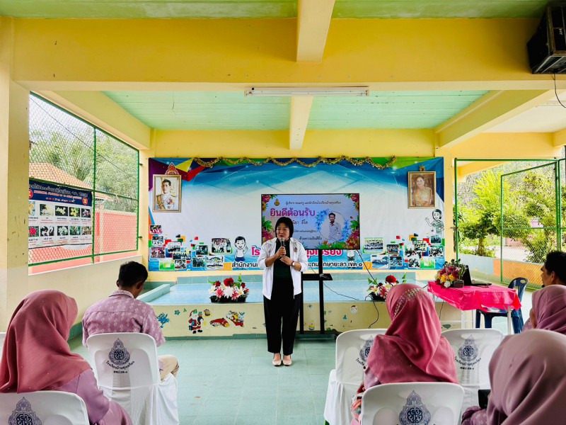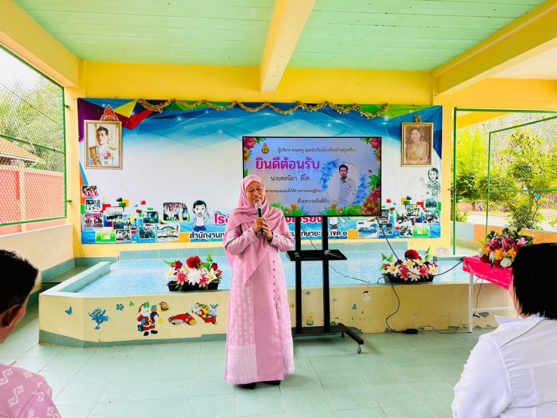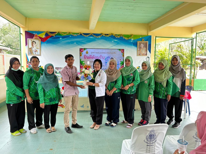 นำโดย นางอุมาวดี วัฒนะนุกุล ผู้อำนวยการโรงเรียน คณะครูและบุคลากรทางการศึกษาโรงเรียนบ้านทุ่งเหรียง ดำเนินการจัดงานต้อนรับ