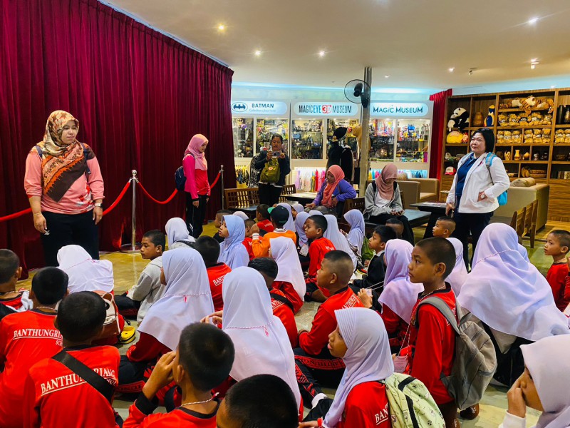 พร้อมด้วยคณะครูและบุคลากรทางการศึกษา ผู้ปกครองนักเรียน นำนักเรียนระดับชั้นอนุบาล 2 -3 และ ชั้นประถมศึกษาปีที่ 1 - 6 ดำเนินโครงการทัศนะศึกษาแหล่งเรียนรู้นอกสถานศึกษา ประจำปี 2566 ณ พิพิธภัณฑ์ภาพวาด 3 มิติ เมจิคอาย อำเภอหาดใหญ่ จังหวัดสงขลา
