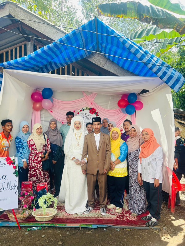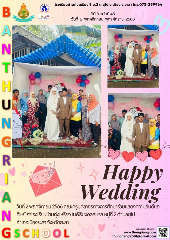 คณะครูบุคลากรทางการศึกษาทุกคน ร่วมแสดงความยินดีแกศิษย์เก่าโรงเรียนบ้านทุ่งเหรียง ในพิธีมงคลสมรส หมู่ที่ 2 ตำบลยุโป อำเภอเมืองยะลา