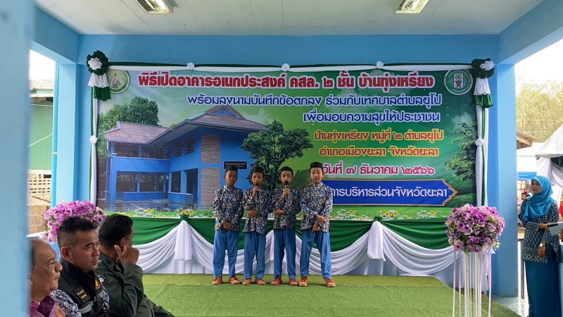เปิดอาคารอเนกประสงค์ โดยมีการแสดงขับร้องอนาชีด จำนวน 2 ชุด และร่วมรับประทานอาหารกลางวัน ณ โรงเรียนตาดีกาบ้านบราแง หมู่ที่2 ต.ยุโป อ.เมือง จ.ยะลา