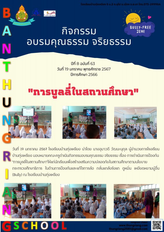 เรื่องการดำเนินการป้องกัน "การบูลลี่ในสถานศึกษา" ให้แก่นักเรียน