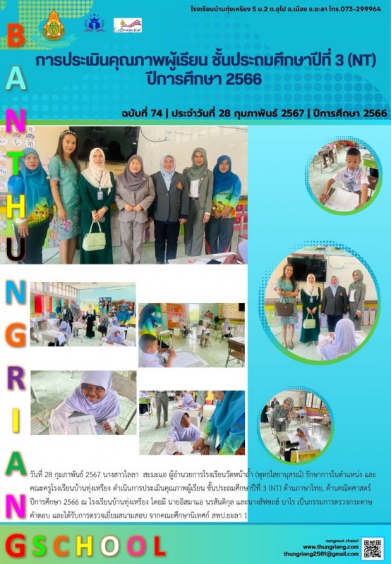 ดำเนินการประเมินคุณภาพผู้เรียน ชั้นประถมศึกษาปีที่ 3 (NT) ด้านภาษาไทย, ด้านคณิตศาสตร์ ปีการศึกษา 2566 ณ โรงเรียนบ้านทุ่งเหรียง