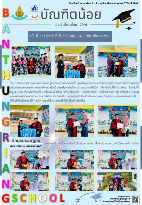 ดำเนินกิจกรรม มอบประกาศนียบัตร ให้แก่นักเรียนที่สำเร็จการศึกษา