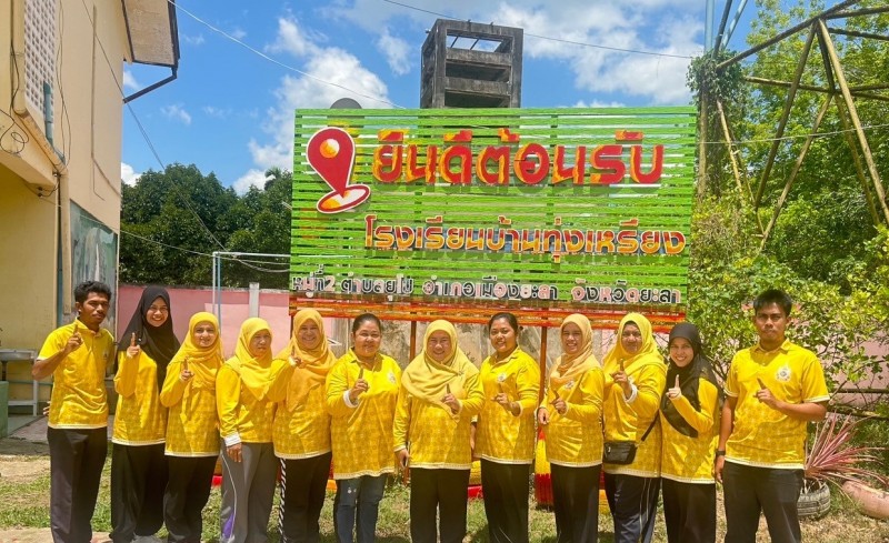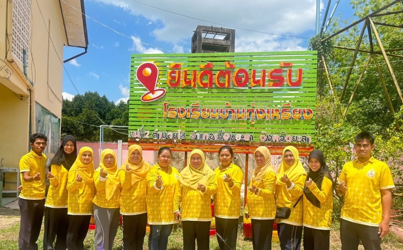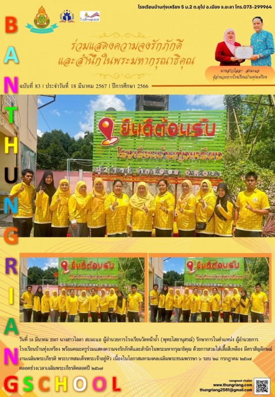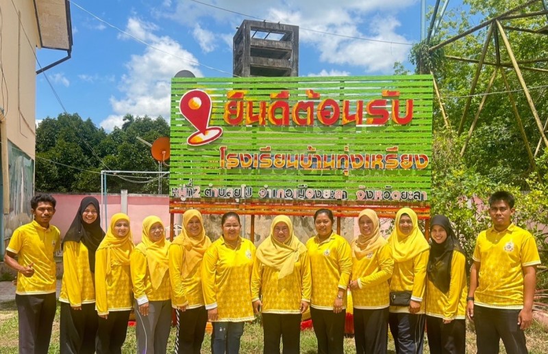 นางสาวไลลา สะมะแอ ผู้อำนวยการโรงเรียนวัดหน้าถ้ำ (พุทธไสยานุสรณ์) รักษาการในตำแหน่ง ผู้อำนวยการโรงเรียนบ้านทุ่งเหรียง พร้อมคณะครูร่วมแสดงความจงรักภักดีและสำนึกในพระมหากรุณาธิคุณ ด้วยการสวมใส่เสื้อสีเหลือง