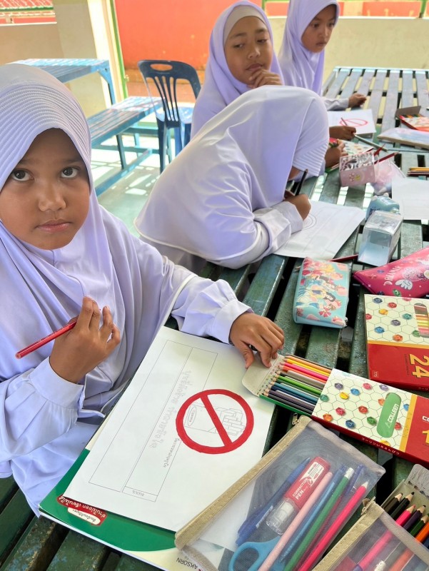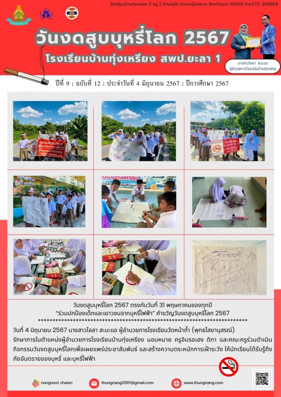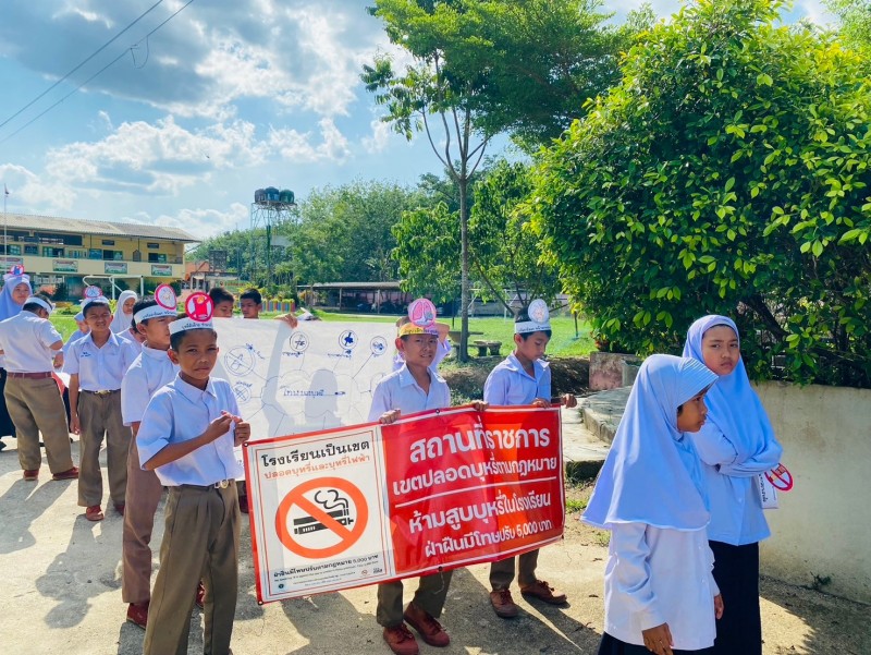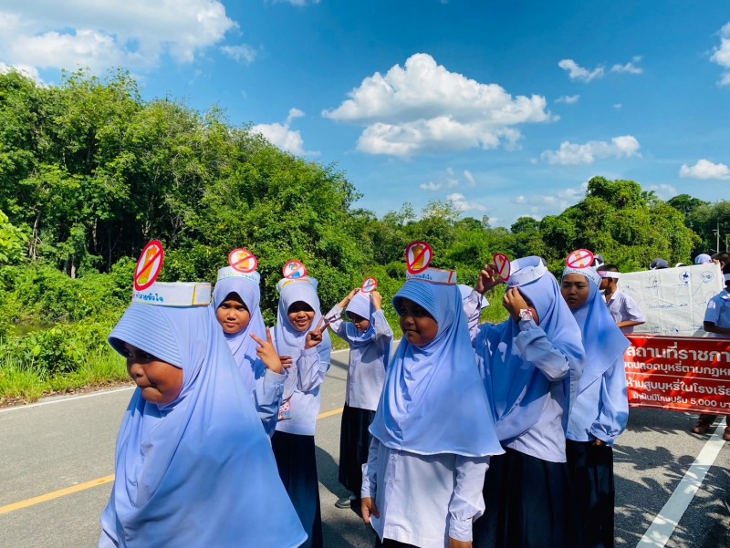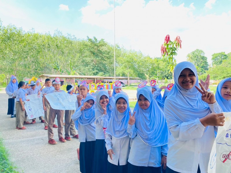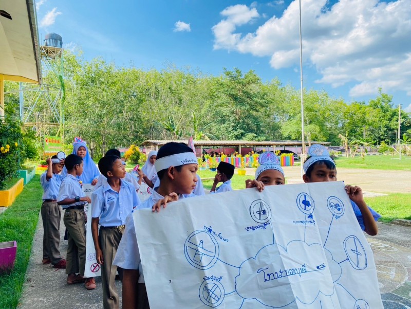 ครูอิบรอเฮง ดิกา และคณะครู ร่วมดำเนินกิจกรรมวันงดสูบบุหรี่โลก