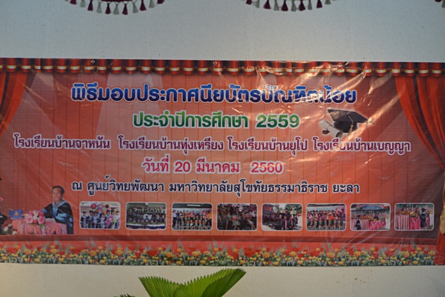 วันที่ ๒๐ มีนาคม พ.ศ. ๒๕๖๐ โรงเรียนภายในศูนย์เครือข่ายโตรสัมพันธ์ จำนวน ๔ โรงเรียนได้จัดกิจกรรมมอบเกียรติบัตร แก่นักเรียนที่จบการศึกษาชั้นอนุบาลปีที่ ๒ และประถมศึกษาปีที่ ๖ จำนวน ๔ โรงเรียน คือโรงเรียนบ้านจาหนัน โรงเรียนบ้านยุโป โรงเรียนบ้านทุ่งเหรียง และโรงเรียนบ้านเบญญา โดยมีผู้ปกครองและนักเรียนเข้าร่วมประมาณ ๓๐๐ คน |