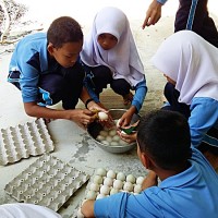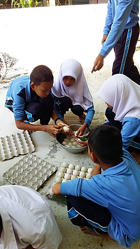 วันนี้(29 มิถุนายน 2560) เวลา 13.00 น. โรงเรียนได้ฝึกปฏิบัติการจัดทำไข่เค็มสมุนไพรใบเตย เป็นการยึดอายุให้กับไข่เป็ด เพิ่มมูลค่าและสามารถนำความรู้ไปประกอบอาชีพเสริมได้ในอนาคต โรงเรียนจึงได้จัดตั้งกลุ่มสนใจขึ้นโดยมียุวเกษตรกรของโรงเรียนบ้านทุ่งเหรียงเป็นแกนนำ ร่วมฝึกงานอาชีพในวิชาการงานอาชีพฯ ประสบผลสำเร็จเป็นอย่างดี ได้ไข่เค็มจำนวน 12 ขวด และไข่เค็มพอกดินผสมใบเตย 40 ฟอง |