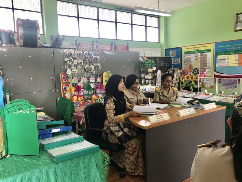 เมื่อวันที่ ๑๘ ธันวาคม ๒๕๖๐ นางสาวนิธิมา โยธาทิพย์ และคณะกรรมการฯจาก ศึกษาธิการจังหวัด ประกอบด้วย นางกชกร แท่นรัตน์ ศึกษานิเทศก์ชำนาญการ สพป.ยล ๑ และ นางสีวัน ดำแจ่ม ครูชำนาญการพิเศษโรงเรียนบ้านปุโรง มาประเมิน ด้าน๑ และ ด้าน๒ นางมนฑา อินทมิน สาระภาษาไทย และ คณะกรรมการอีกชุด มี ผอ.รร.บ้านทุ่งเหรียง ประธาน และ นางปราณี อ่องหลี ศึกษานิเทศก์ชำนาญการ สพป.ยล.๑ และ นางกอมารียะห์ ลังสารี ครูชำนาญการพิเศษโรงเรียนบ้านตาโละ ประเมิน ด้าน๑ และด้าน ๒ นางวิจิตตรา อุศมา สาระปฐมวัย |