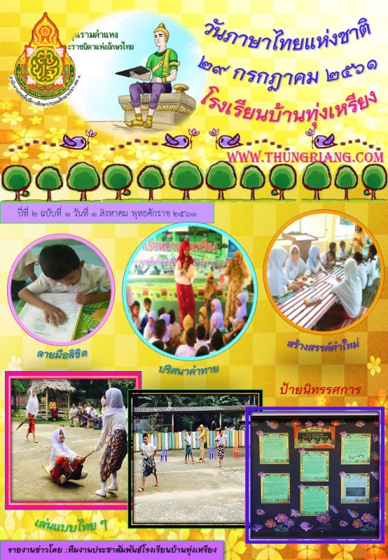 เมื่อวันที่ ๑ สิงหาคม ๒๕๖๑ โรงเรียนบ้านทุ่งเหรียง มีกิจกรรมวันภาษาไทยแห่งชาติ ๒๙ กรกฎาคม ๒๕๖๑ โดยแบ่งกิจกรรมเป็นฐาน ให้ความรู้แก่นักเรียน และการละเล่นแบบไทย ๆ