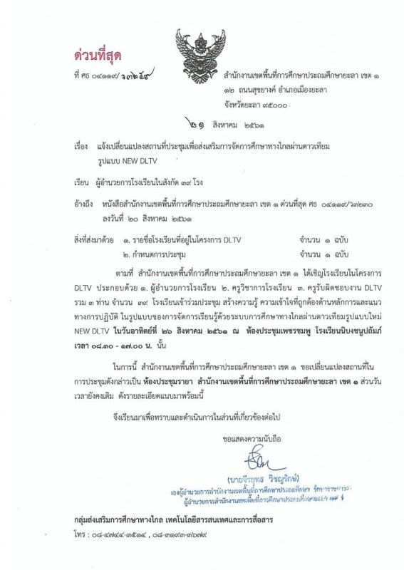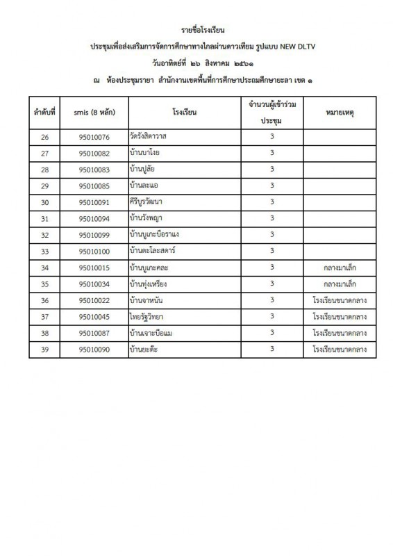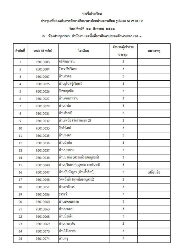 เมื่อวันที่ ๒๖ สิงหาคม ๒๕๖๑ นางสาวนิธิมา โยธาทิพย์ ผู้อำนวยการโรงเรียนบ้านทุ่งเหรียง นางสาวนูรีซัน อุเซ็ง ครูวิชาการโรงเรียนบ้านทุ่งเหรียง และนางสาวนูรีซัน สะมะ ครูผู้รับผิดชอบงาน DLTV เข้าร่วมประชุม New DLTV ณ ห้องประชุมรายา สำนักงานเขตพื้นที่การศึกษาประถมศึกษายะลา เขต ๑