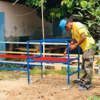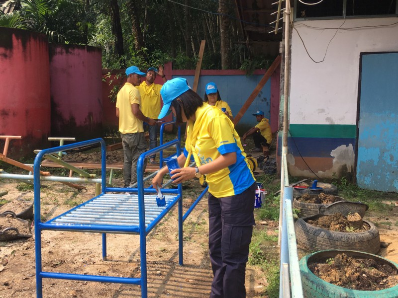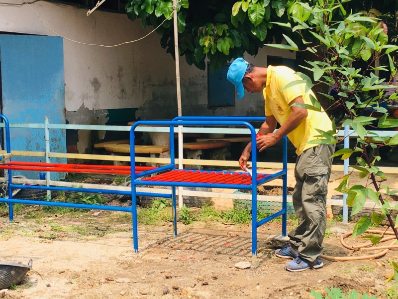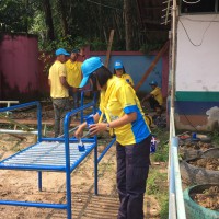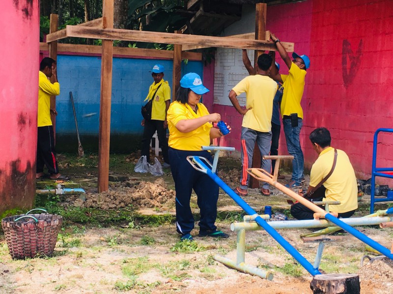 ฐานที่ ๓ ปรับปรุงซ่อมแซมเครื่องเล่นสนามที่ชำรุดให้ใช้การได้เพื่อส่งเสริมพัฒนาการของนักเรียนระดับปฐมวัย