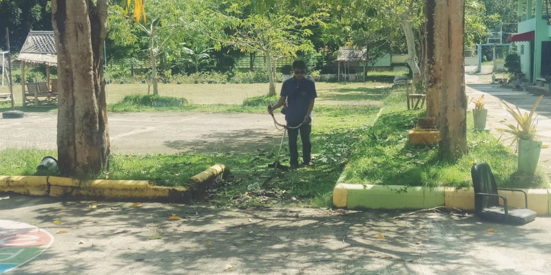 พนักงานรักษาความปลอดภัย และ นักการภารโรง โรงเรียนบ้านทุ่งเหรียง เตรียมความพร้อมดูแลอาคารสถานที่ ก่อนเปิดภาคเรียนที่ 2 ปีการศึกษา 2562