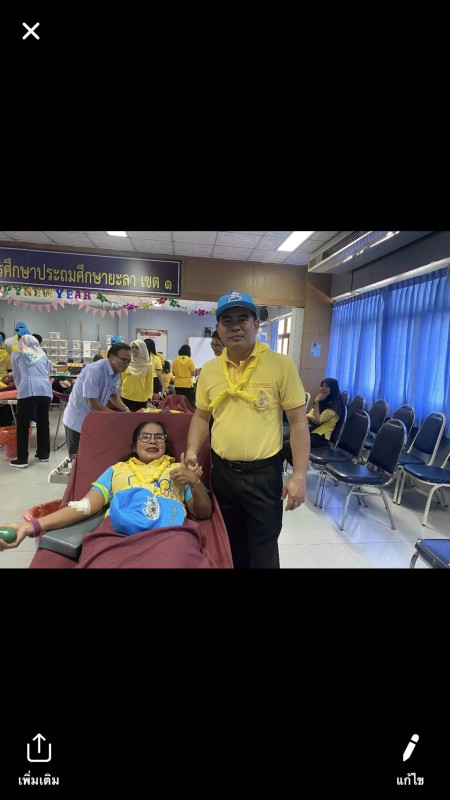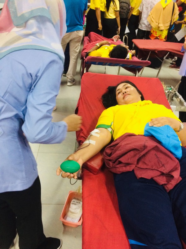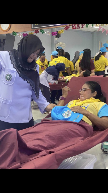 นางสาวนิธิมา โยธาทิพย์ ผู้อำนวยการโรงเรียนบ้านทุ่งเหรียง คณะครูและบุคลากรทางการศึกษา โรงเรียนบ้านทุ่งเหรียง สำนักงานเขตพื้นที่การศึกษาประถมศึกษายะลา เขต 1 ร่วมกิจกรรมวันครูประจำปี 2563 จิตอาสาบริจาคโลหิต เนื่องในวันครู วันอังคาร ที่ 14 มกราคม 2563 ณ ห้องประชุมรายา สำนักงานเขตพื้นที่การศึกษาประถมศึกษายะลา เขต 1