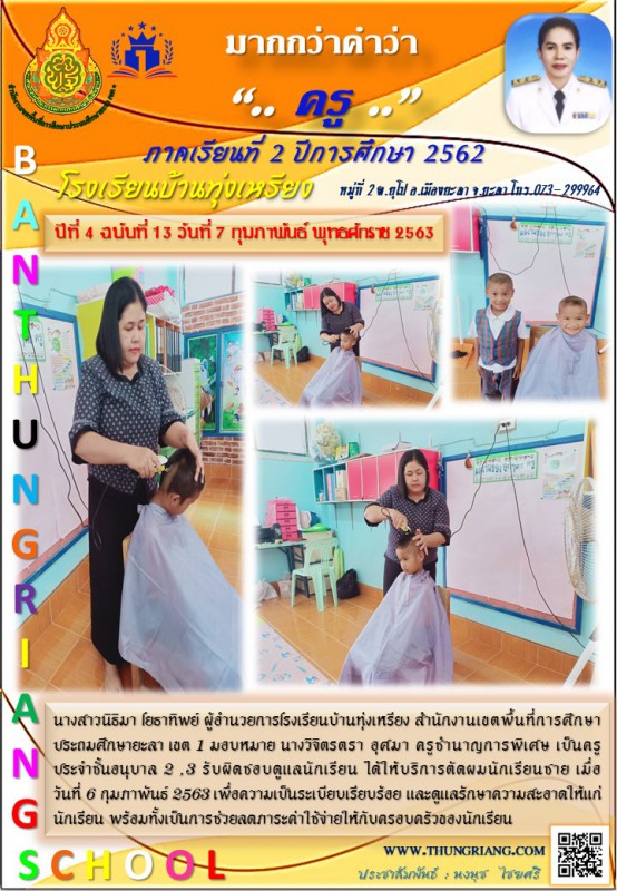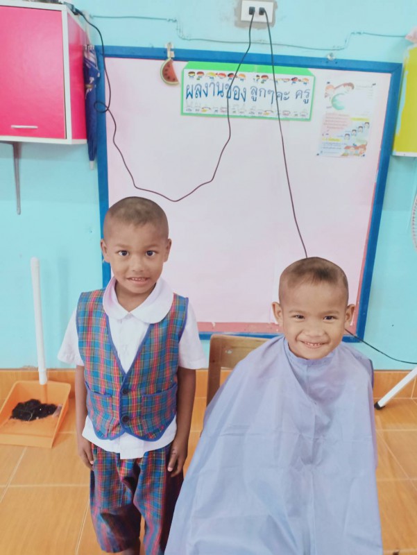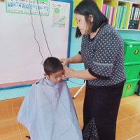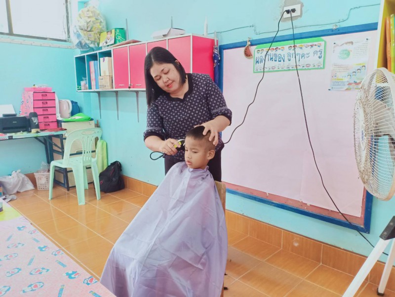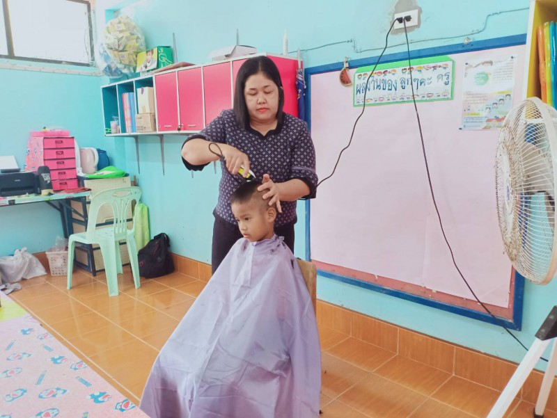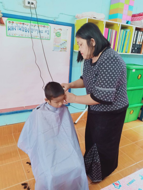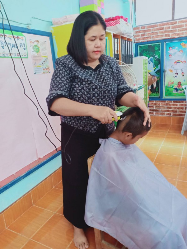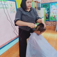 ครูชำนาญการพิเศษ เป็นครูประจำชั้นอนุบาล 2 ,3 รับผิดชอบดูแลนักเรียน ได้ให้บริการตัดผมนักเรียนชาย เมื่อวันที่ 6 กุมภาพันธ์ 2563 เพื่อความเป็นระเบียบเรียบร้อย และดูแลรักษาความสะอาดให้แก่นักเรียน พร้อมทั้งเป็นการช่วยลดภาระค่าใช้จ่ายให้กับครอบครัวของนักเรียน
