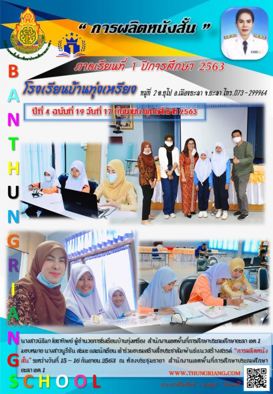 นางสาวนิธิมา โยธาทิพย์ ผู้อำนวยการโรงเรียนบ้านทุ่งเหรียง มอบหมาย นางสาวนูรีซัน สะมะ และนักเรียนเข้าร่วมอบรมสร้างสื่อประชาสัมพันธ์แนวสร้างสรรค์ “การผลิตหนังสั้น” เมื่อวันที่ 15-16 กันยายน 2563
