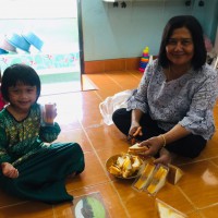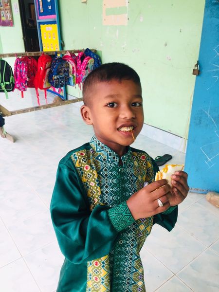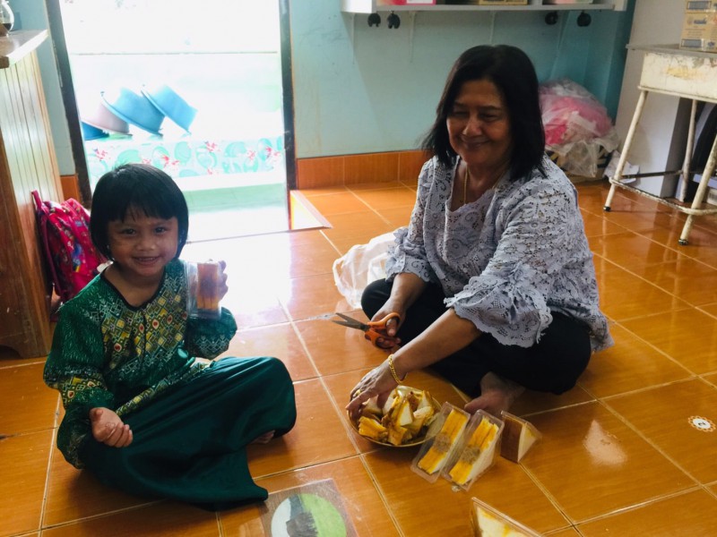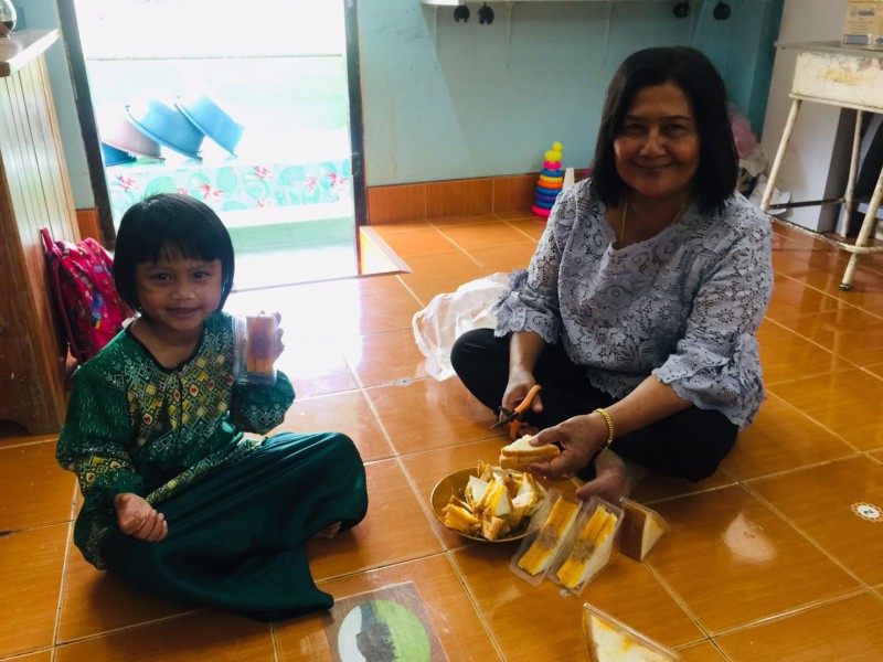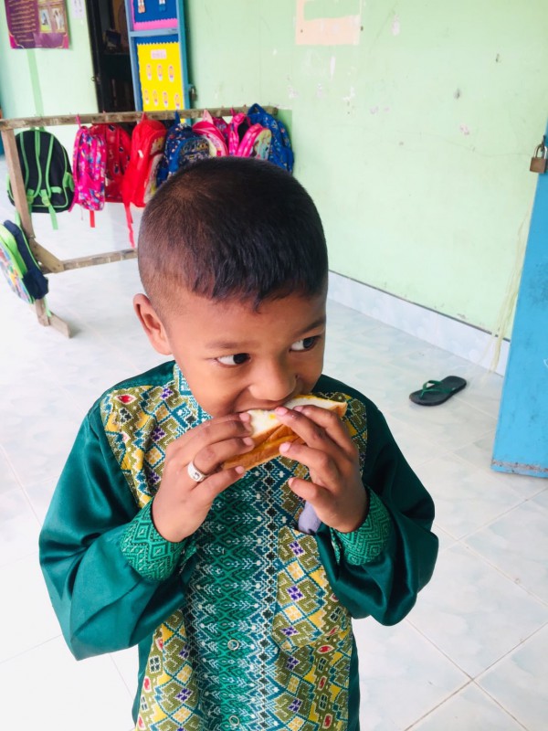 ผู้ปกครองเด็กหญิงนุรเอมีเลีย เปาะลี นักเรียนชั้นอนุบาล 2 สนับสนุนอาหารว่างให้แก่นักเรียนชั้นอนุบาล 2 และ อนุบาล 3