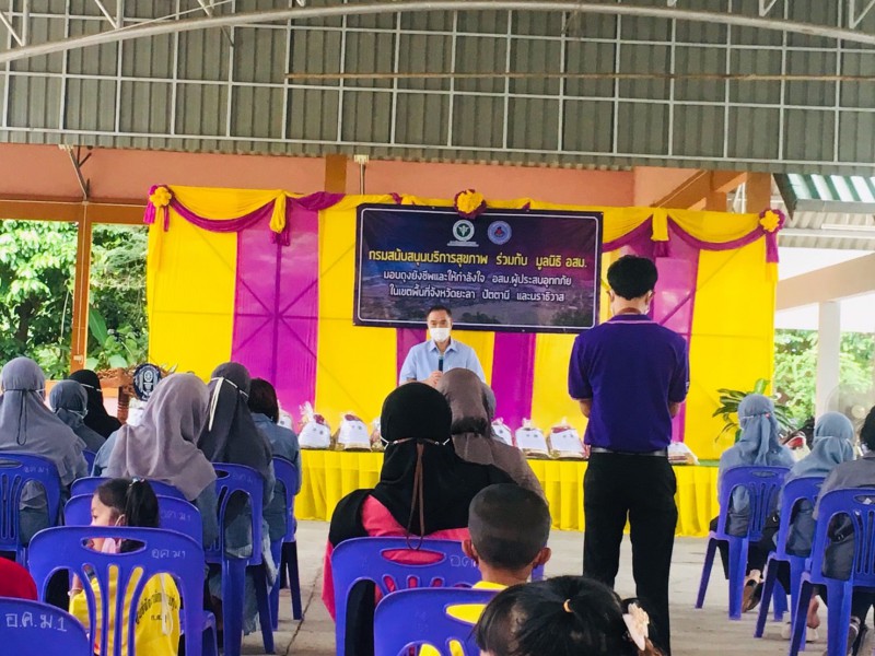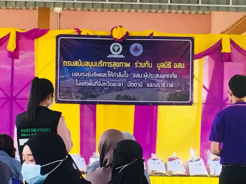 รับมอบถุงยังชีพ จากกรมสนันสนุนบริการสุขภาพร่วมกับ มูลนิธิอสม.