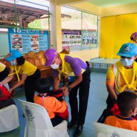 จัดกิจกรรมจิตอาสา ทาสีรั้ว กำแพงโรงเรียน เพื่อปรับปรุง ฟื้นฟู โรงเรียนให้มีสภาพภูมิทัศน์เอื้อต่อการเรียนการสอน หลังจากที่โรงเรียนประสบภัยพิบัติอุทกภัยน้ำท่วมขัง