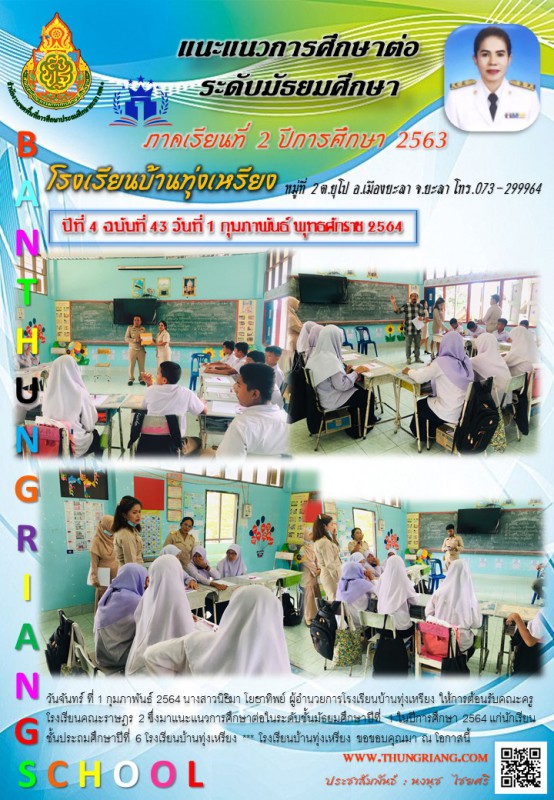 ซึ่งมาแนะแนวการศึกษาต่อในระดับชั้นมัธยมศึกษาปีที่ 1 ในปีการศึกษา 2564 แก่นักเรียนชั้นประถมศึกษาปีที่ 6 โรงเรียนบ้านทุ่งเหรียง *** โรงเรียนบ้านทุ่งเหรียง ขอขอบคุณมา ณ โอกาสนี้