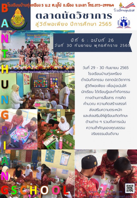 วันที่ 29 - 30 กันยายน 2565 โรงเรียนบ้านทุ่งเหรียง ดำเนินกิจกรรม ตลาดนัดวิชาการ สู่วิถีพอเพียง เพื่อมุ่งเน้นให้นักเรียน ได้เรียนรู้และทำกิจกรรมทางด้านการสื่อสาร การคิดคำนวณ ความคิดสร้างสรรค์ ส่งเสริมความตระหนัก และส่งเสริมให้ผู้เรียนเกิดทักษะ ด้านต่าง ๆ รวมถึงการเน้น ความสำคัญของคุณธรรมจริยธรรมอันดีงาม
