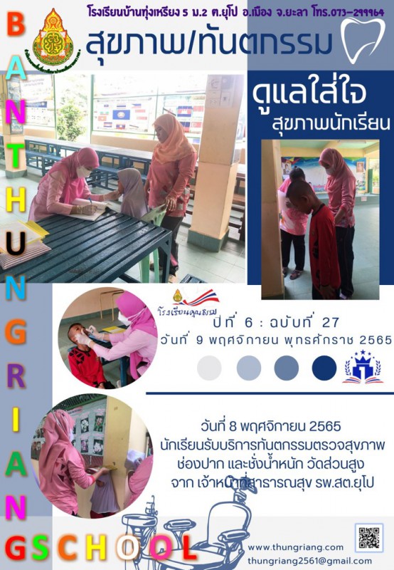 วันที่ 8 พฤศจิกายน 2565 นักเรียนรับบริการทันตกรรมตรวจสุขภาพช่องปาก และชั่งน้ำหนัก วัดส่วนสูง จาก เจ้าหนัาที่สาธารณสุข รพ.สต.ยุโป