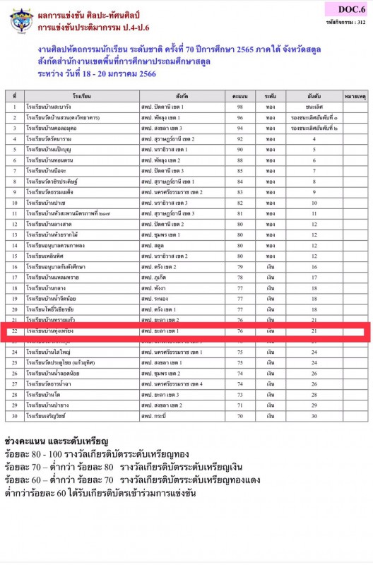 ครั้งที่ 70 ปีการศึกษา 2565 ภาคใต้ จังหวัดสตูล