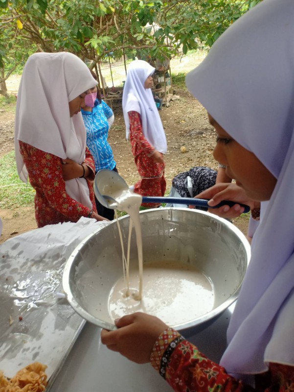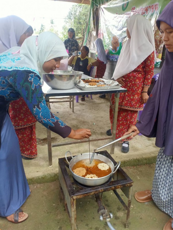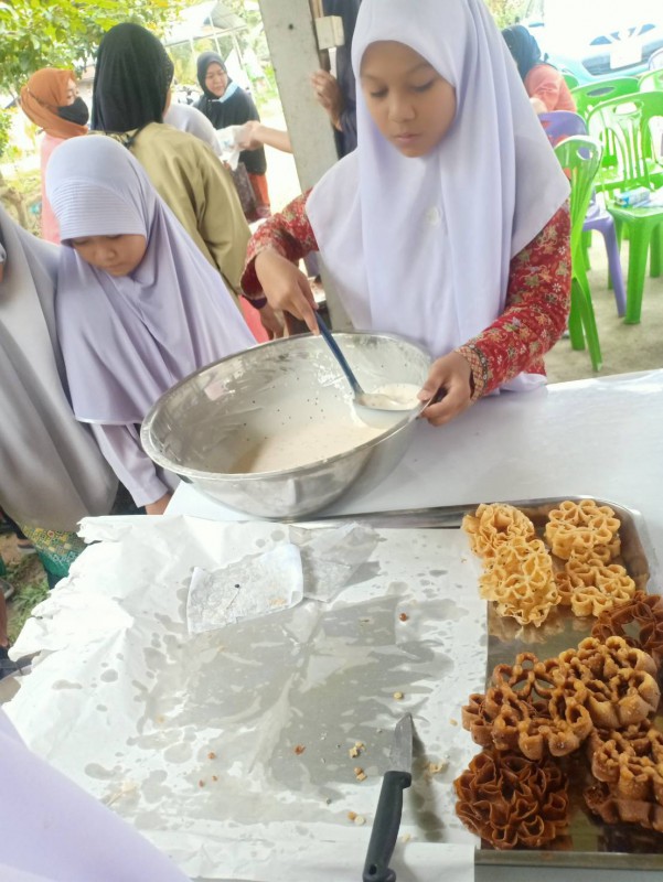 นำโดย ครูอาซีซ๊ะ มะลี พานักเรียนจำนวน 10 คนเข้าร่วมโครงการส่งเสรมคุณภาพชีวิตประชาชน ทำขนมดอกจอก ณ ศูนย์การเรียนรู้เศรษฐกิจพอเพียง ตำบลยุโป อำเภอเมือง จังหวัดยะลา