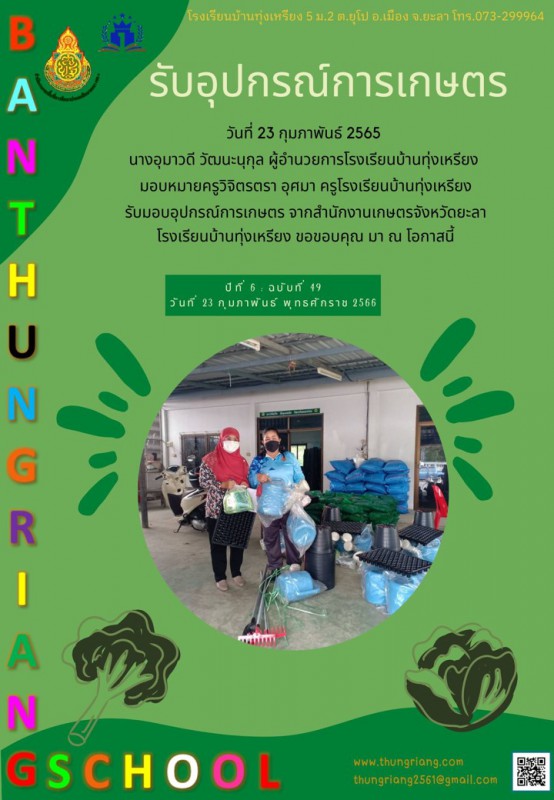 มอบหมายครูวิจิตรตร อุศมา รับมอบอุปกรณ์การเกษตร