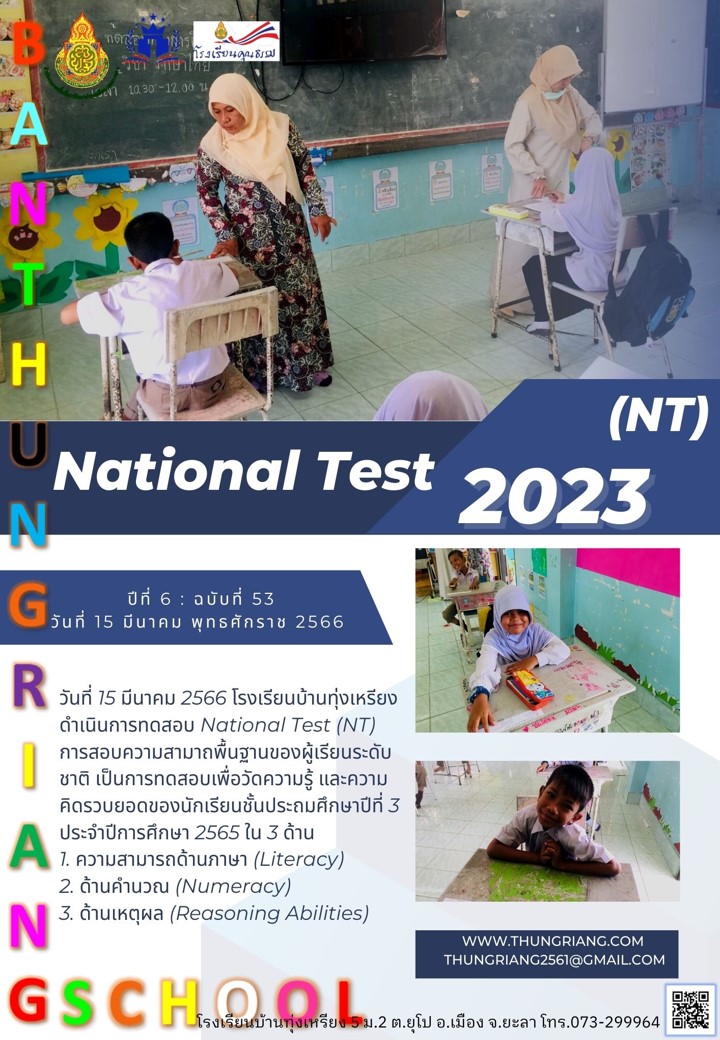 วันที่ 15 มีนาคม 2566 โรงเรียนบ้านทุ่งเหรียง ดำเนินการทดสอบ National Test (NT) การสอบความสามาถพื้นฐานของผู้เรียนระดับชาติ เป็นการทดสอบเพื่อวัดความรู้ และความคิดรวบยอดของนักเรียนชั้นประถมศึกษาปีที่ 3 ใน 3 ด้าน