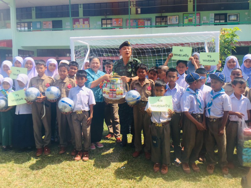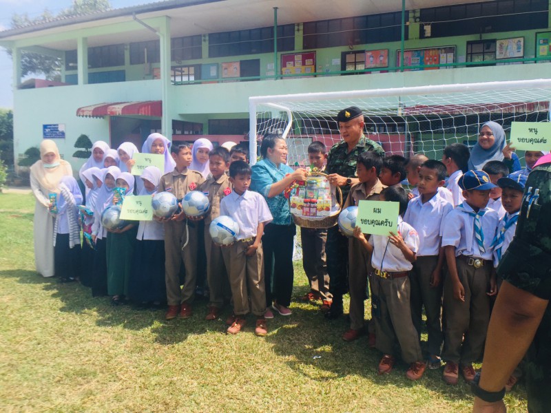นำโดย นางอุมาวดี วัฒนะนุกุล ผู้อำนวยการโรงเรียน คณะครู บุคลากรทางการศึกษา และนักเรียน ร่วมกันต้อนรับ พลตรี ธนัช ฉิมพาลี ผู้บังคับหน่วยเฉพาะกิจยะลา และคณะ ในโอกาสมามอบประตูฟุตบอล อุปกรณ์กีฬา และขนมให้แก่นักเรียน เพื่อเปิดโอกาสให้นักเรียนได้สานฝันการเล่นกีฬาฟุตบอล ใช้เวลาว่างในการออกกำลังกาย ให้นักเรียนมีทั้งสติปัญญาควบคู่กับการมีสุขภาพที่แข็งแรง ทางโรงเรียนซาบซึ้งที่ท่านได้ให้เกียรติและเห็นความสำคัญของเยาวชน และขอขอบคุณท่านเป็นอย่างสูงค่ะ