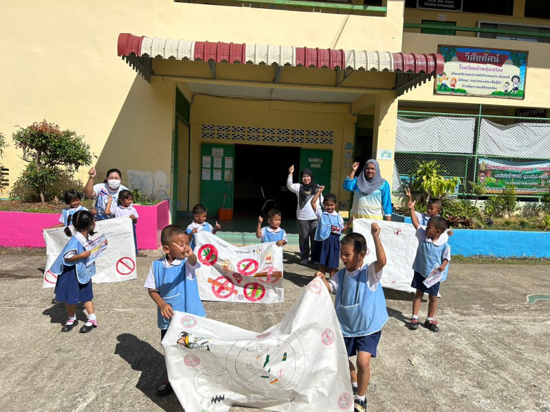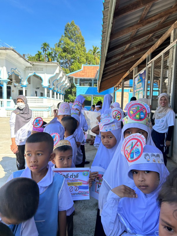 ผู้อำนวยการโรงเรียนบ้านทุ่งเหรียง คณะครู บุคลากรทางการศึกษา และนักเรียนทุกระดับชั้น ร่วมดำเนินกิจกรรมวันต่อต้านยาเสพติดโลก โดย