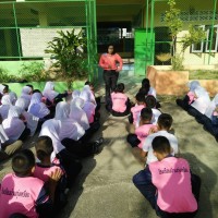 ผู้อำนวยการโรงเรียนบ้านทุ่งเหรียงกล่าวทักทายและให้โอวาทนักเรียน